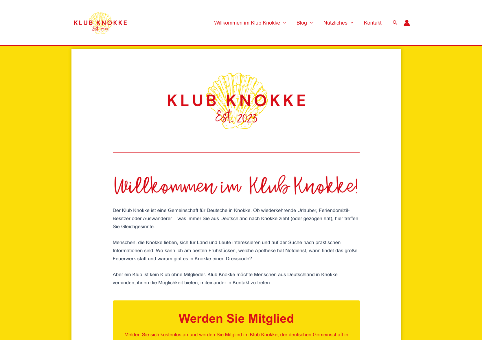 Einmal auf den Geschmack gekommen, habe ich ebenfalls in WordPress die Website für mein eigenes Projekt Klub Knokke – Die Deutsche Gemeinschaft in Knokke gestaltet. Die häufigste Anmerkung dazu ist: "Man merkt, dass Du aus dem Print-Bereich (Zeitung) kommst." Das kann ich schlecht leugnen. Aber: Es gibt tausend und eine Theorie, wie Websites user-freundlich auszusehen haben. Zeitungen haben jedoch ein seit Jahrhunderten erprobtes und bewährtes Layout. Da denke ich, warum sollt man es nicht auch für Websites verwenden und dann mit den Möglichkeiten des digitalen Designs verbinden. Sozusagen das Beste aus beiden Welten. Wer sich über die ungewöhnliche Farbwahl wundert: Gelb und Rot sind die Farben von Knokke, und ja, ist vielleicht ein bisschen knallig, aber es ist ja auch eine Seite, die Spaß machen soll.